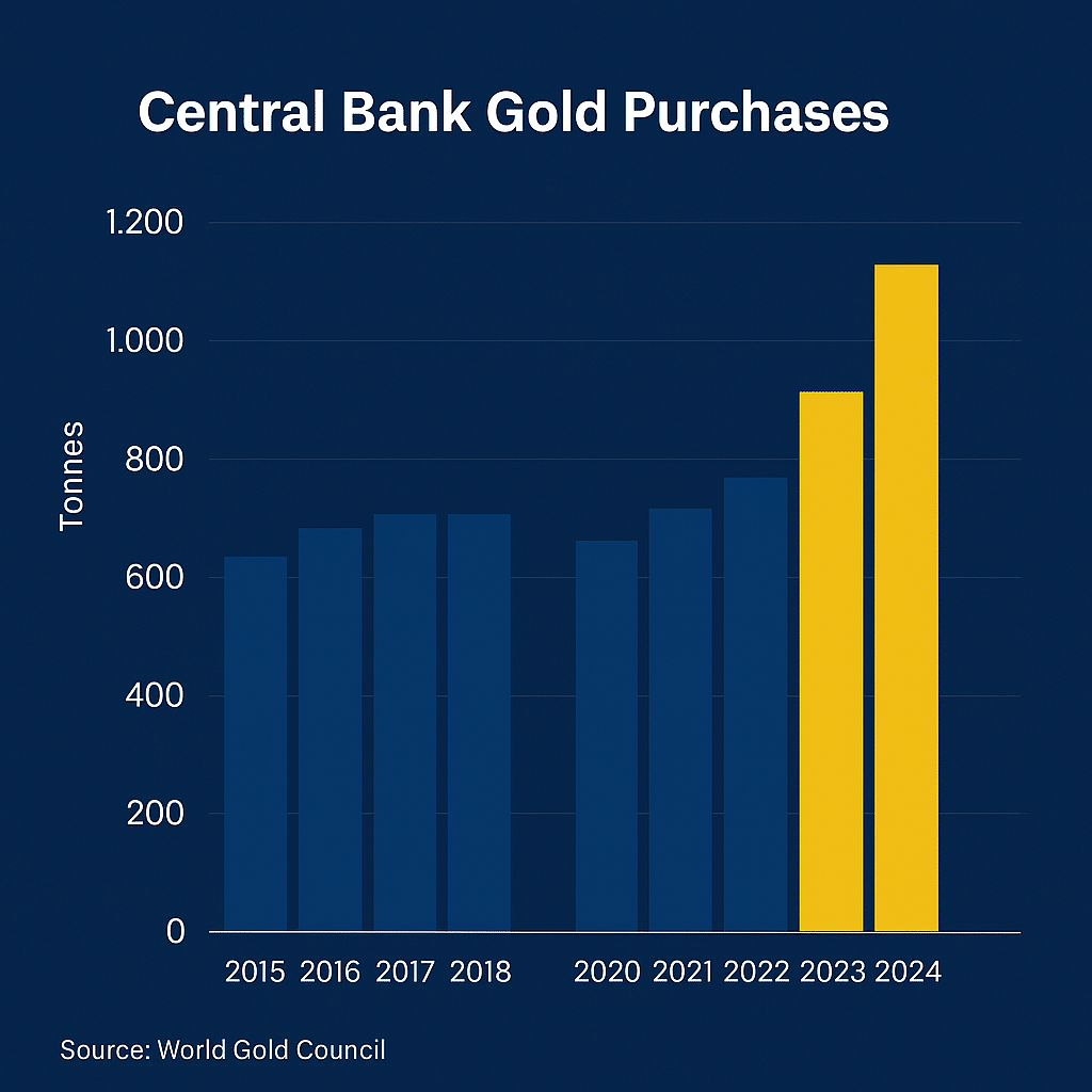 Every time the dollar weakens, every time deficits rise, and every time geopolitics fractures, reserve managers and investors alike reach the same conclusion: a little more gold can’t hurt.