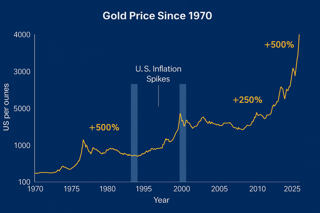 If you blinked at the start of 2025, you probably missed one of the fastest ever USD 1,000 moves in the gold price. Gold burst through USD 3,000/oz earlier this year and raced toward USD 4,000 – a 150% surge since mid-2022. This isn’t a speculative blip. It’s a confidence crisis playing out in real time. Until recently, gold was a sideshow in global markets. Now it’s centre stage again … a symbol of trust, sovereignty, and control.